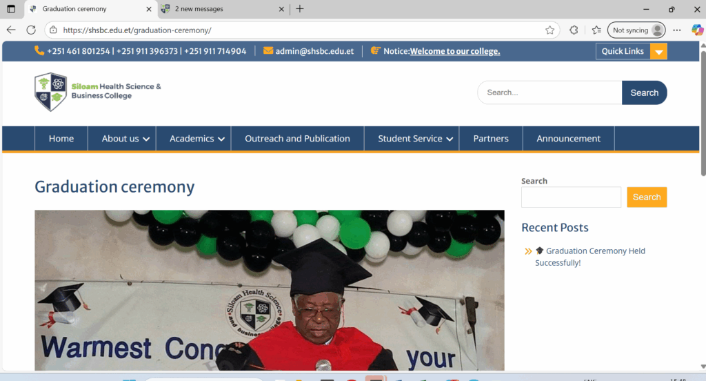Siloam Health Science and Business College is pleased to announce the successful launch of its official website. The new platform enhances communication, provides easy access to academic information, and showcases the college’s programs and activities. This marks an important step toward digital transformation and improved service delivery for students, staff, and the community.